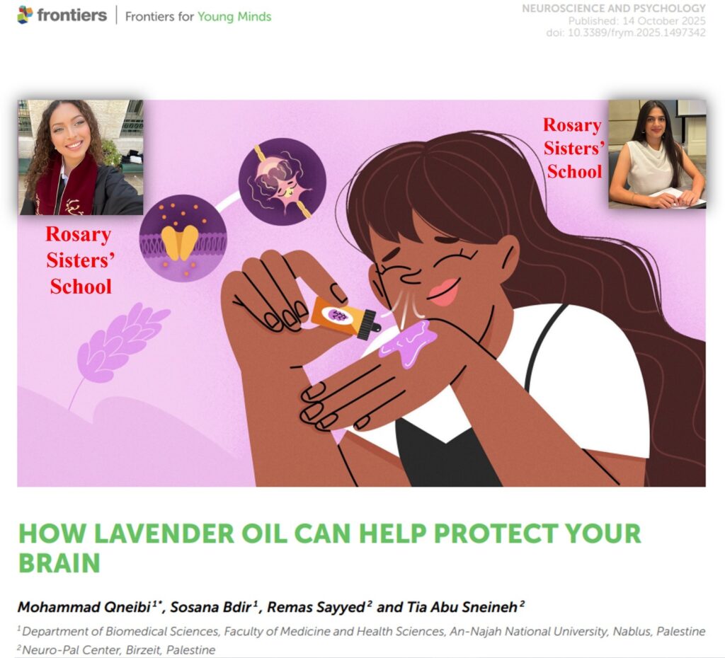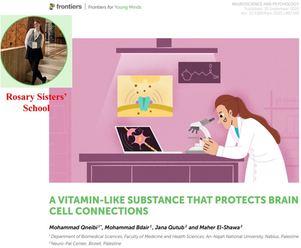 The Rosary Sisters’ High School in Jerusalem proudly congratulates Jana Qutub, Remas Sayyed, and Tia Abu Sneineh on the successful publication of their recent works. Their unwavering commitment to completing all levels of research skills at our Neuro-Pal Center, paired with their dedication, creativity, and hard work, has culminated in the publication of two scientific papers in a prestigious science journal focused on Neuroscience and Psychology, making them among the first students in the Middle East to achieve this remarkable milestone.